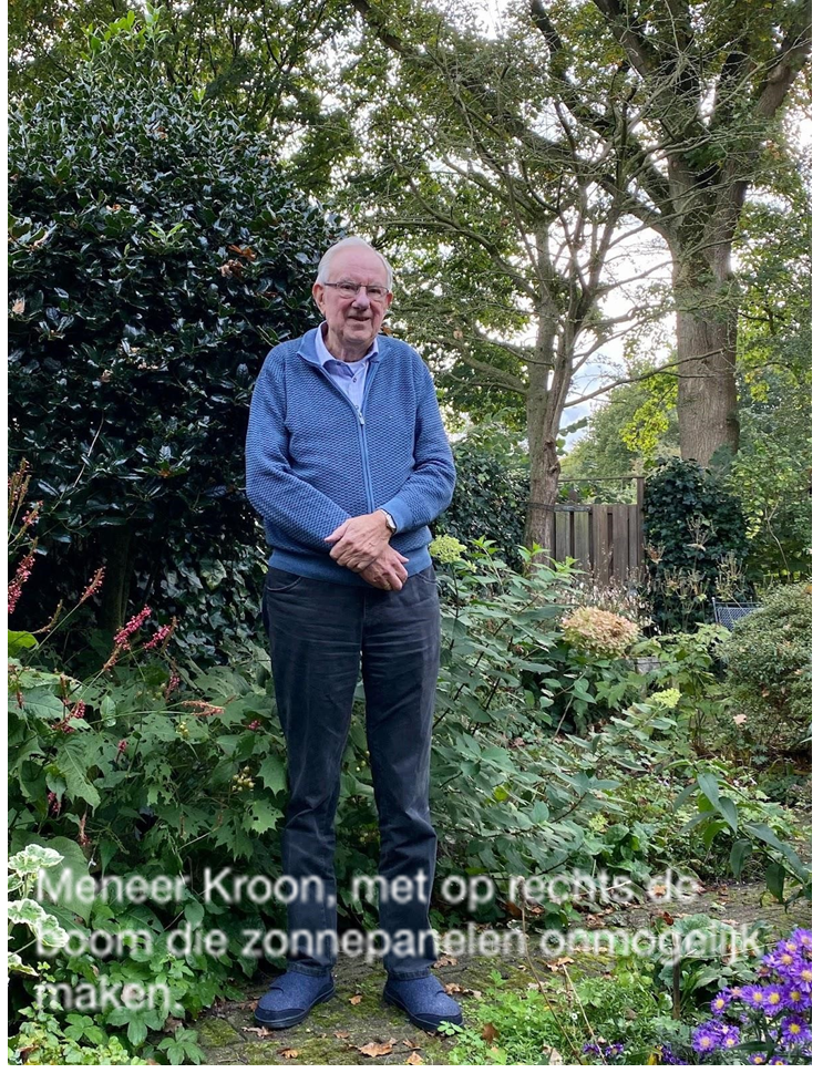 Toen ik als een van de oudste bij het straatgesprek van de initiatiefnemers aanwezig was stelde ik de vraag wat ze van mij als 85-jarige man verwachten. Daar had eigenlijk niemand een antwoord op. Als ouderen kunnen wij al het ‘gedoe’ steeds minder hebben en we zetten ook niet snel de verwarming een graadje lager. Daarnaast kan ik ook geen zonnepanelen op mijn dak leggen vanwege een 22 meter hoge boom achter ons huis. En weet je wat het ook is? Het kost zeven jaar om zonnepanelen terug te verdienen, tel dat maar eens bij mijn leeftijd op... Die instelling merk in ook bij mijn buren.